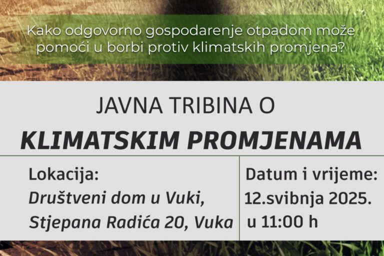 Poziv mještanima – javna tribina o klimatskim promjenama – 12.05.2025. u 11.00 sati, Društveni dom u Vuki, Stjepana Radića 20